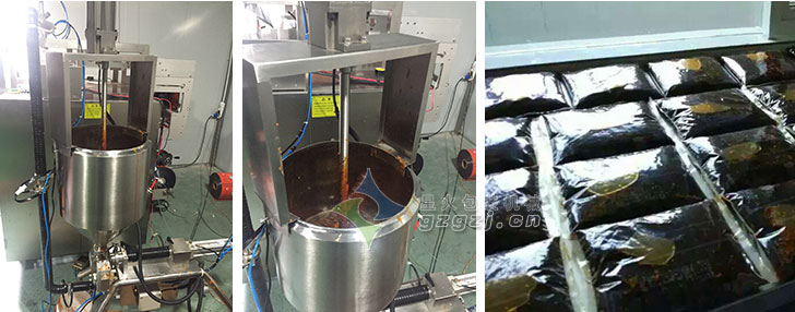 1、該機主要用于麻辣醬、香辣醬、牛肉醬、豆辨醬、鮮辣醬、豆豉及郫縣豆醬、火鍋料等醬類灌裝;