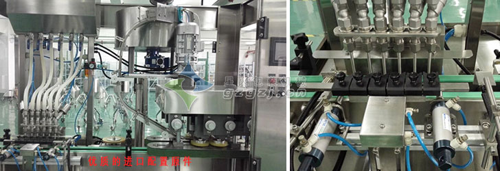 五味醬灌裝機(jī)_大顆粒牛肉醬灌裝機(jī)_臥式攪拌醬料灌裝機(jī)是廣泛應(yīng)用于顆粒醬料的的生產(chǎn)與分裝行業(yè),可連續(xù)自動(dòng)運(yùn)行灌裝。機(jī)器設(shè)計(jì)緊湊合理、外形簡(jiǎn)潔美觀,灌裝量調(diào)節(jié)方便。專業(yè)針對(duì)顆粒醬料,臥式攪拌,針對(duì)大顆粒醬料灌裝過程容易出現(xiàn)油料分離現(xiàn)象,五味醬灌裝機(jī)_大顆粒牛肉醬灌裝機(jī)_臥式攪拌醬料灌裝機(jī)具有六個(gè)同步注脂灌裝頭,可均勻地被擠壓灌裝到容器里,外觀美觀大方,全不銹鋼,易清潔,采用韓國(guó)光眼裝置,LG韓國(guó)PLC、法國(guó)電器元件,可連續(xù)自動(dòng)運(yùn)行灌裝,無瓶不灌裝,配置防滴漏裝置?筛鶕(jù)客戶需求配置醬料瓶真空旋蓋、自動(dòng)貼標(biāo)、噴碼等配套設(shè)備。