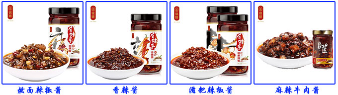 四川錦膳食品有限公司有麻辣醬、香辣醬、拌面醬、拌飯醬、麻辣牛肉醬、滋粑辣椒醬這幾種醬料主打產(chǎn)品。